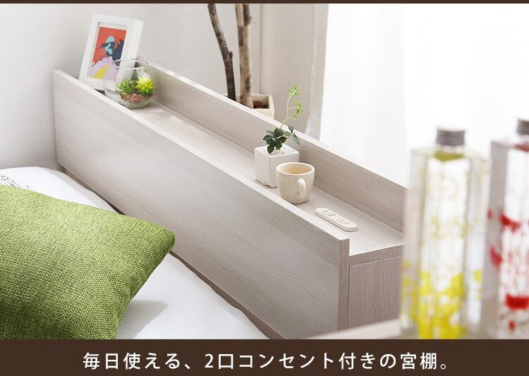 タブレットも立て掛けて置ける宮棚にはコンセント付き!