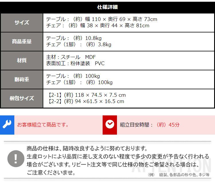 テーブル単体:10.8kg