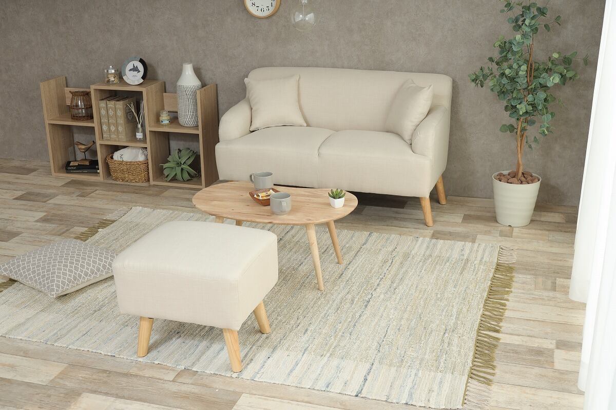 3カラー【アイボリー】【2人掛け】Lily オットマン付きソファ