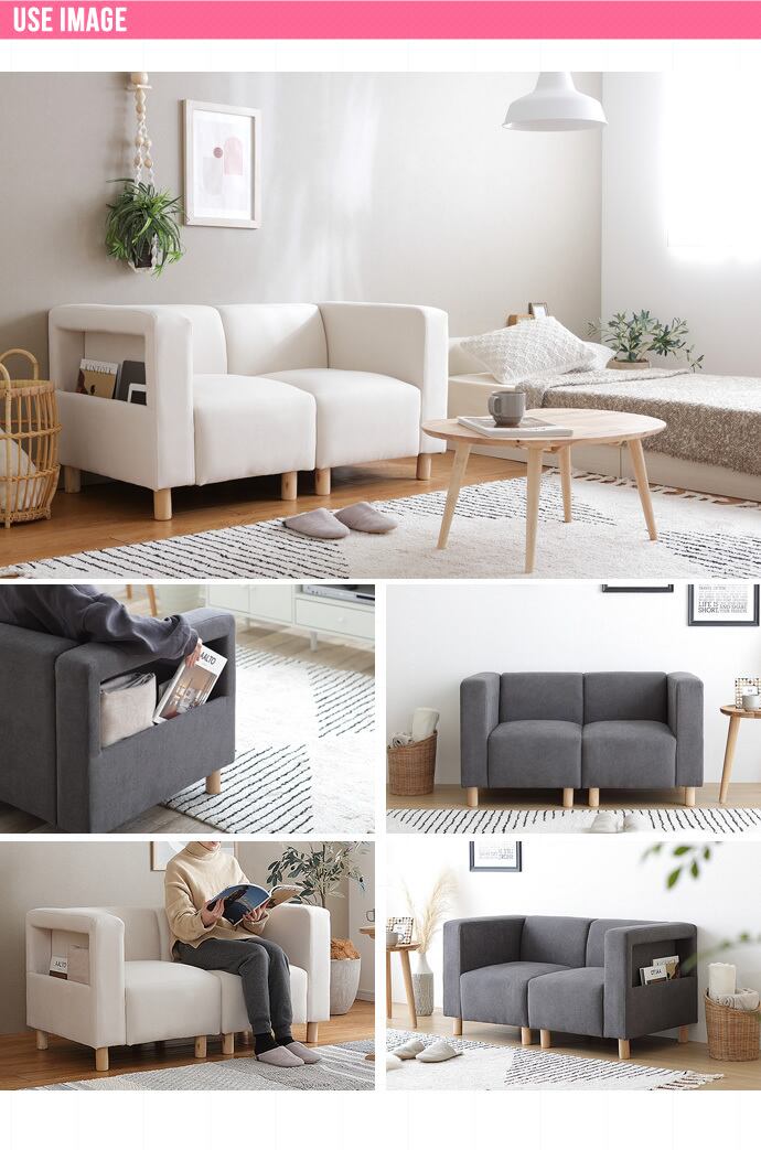 2カラー【アイボリー】Katie ポケット付き2人掛けソファ