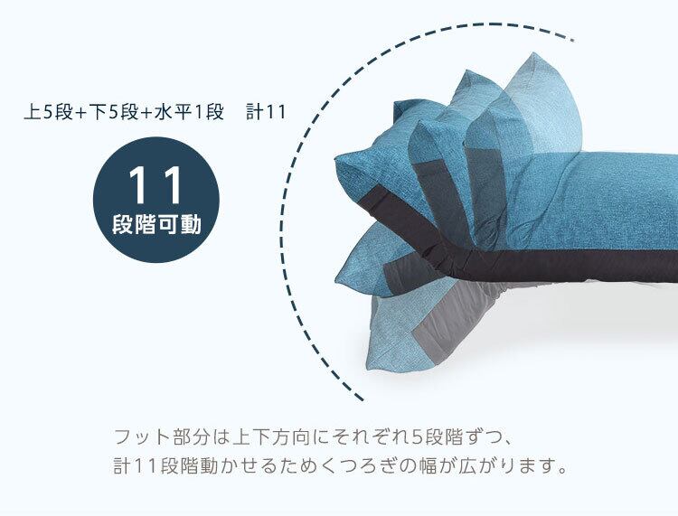 ギアチェンジはなんと!背面リクライニングは42段階、ヘッドは14段階、フットは11段階の調節が可能です!
