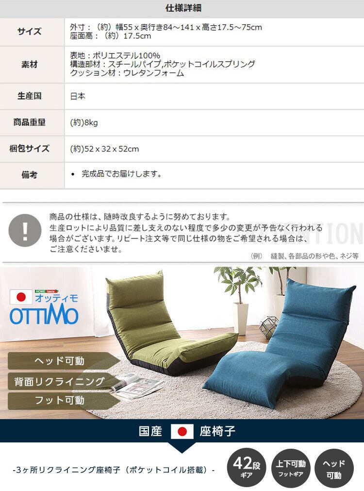 6カラー【ベージュ】フット上下可動 リクライニング座椅子  【OTTIMO-オッティモ-】
