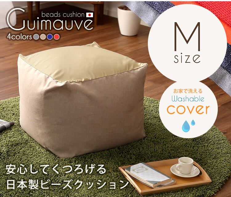 4カラー【ベージュ】【Mサイズ】おしゃれなキューブ型ビーズクッション・カバーがお家で洗えます | Guimauve-ギモーブ