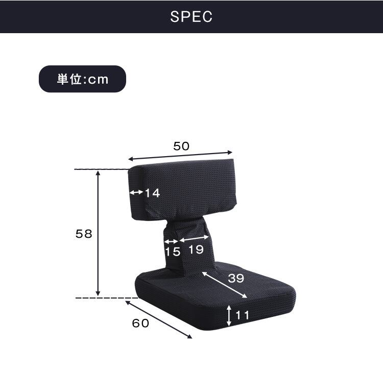 5カラー【ブラック】ゲームファン必見 待望の本格ゲーム座椅子(布地) 6段階のリクライニング|Recon-レコン-
