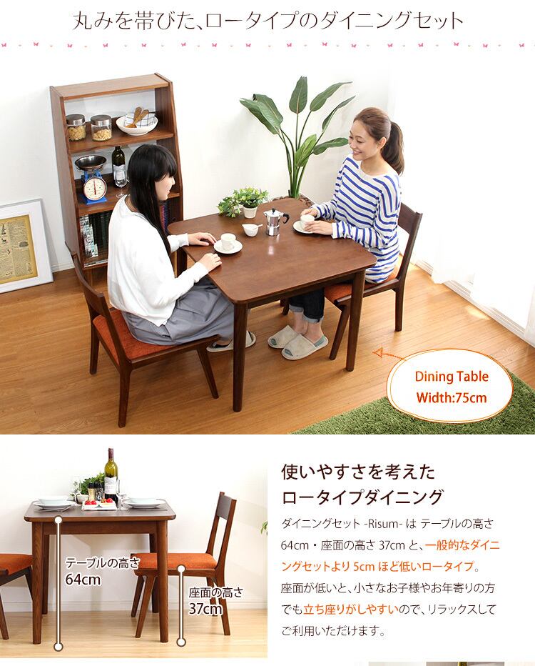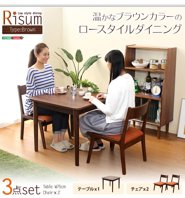 ダイニング3点セット(テーブル+チェア2脚)ナチュラルロータイプ 木製アッシュ材|Risum-リスム-