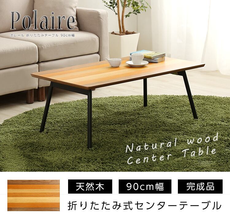 フォールディングテーブル【Polaire-ポレール-】(折り畳み式 センターテーブル 天然木目 完成品)
