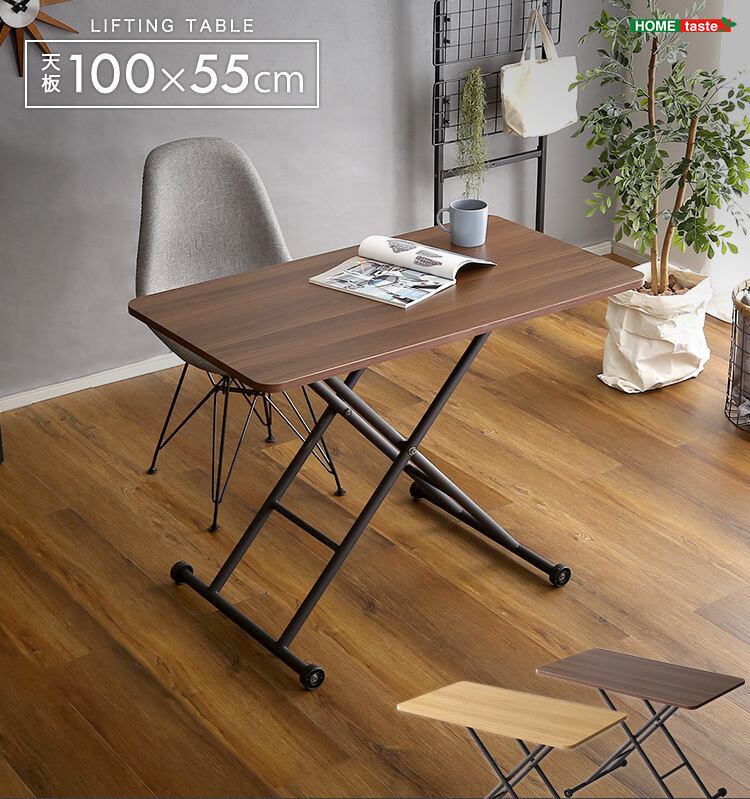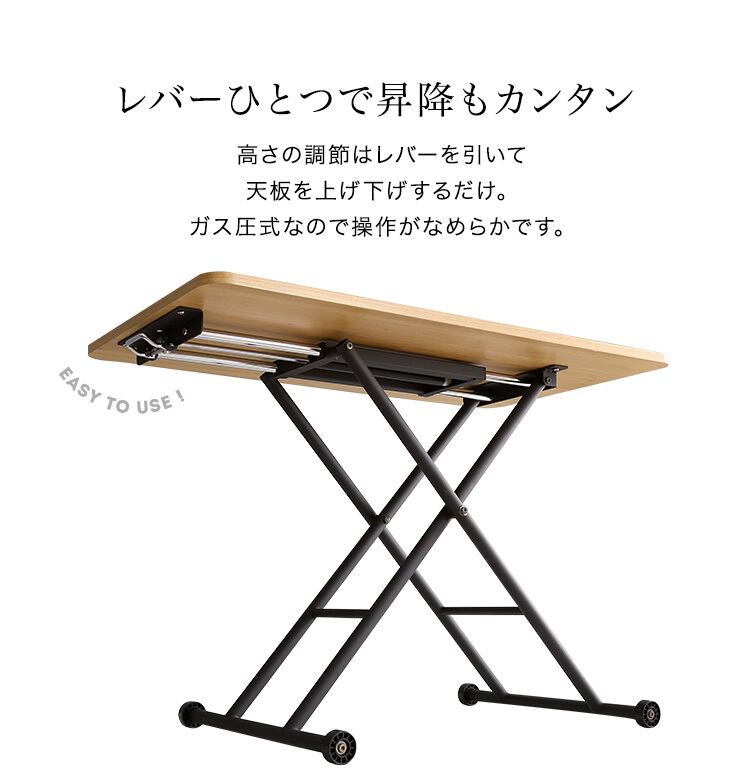 スタイルに合わせて調節可能な昇降テーブル。コンパクトに収納可能な折りたたみ式で収納場所に困りません。天板は幅100cmで広く使用可能でデスクワークにも最適!