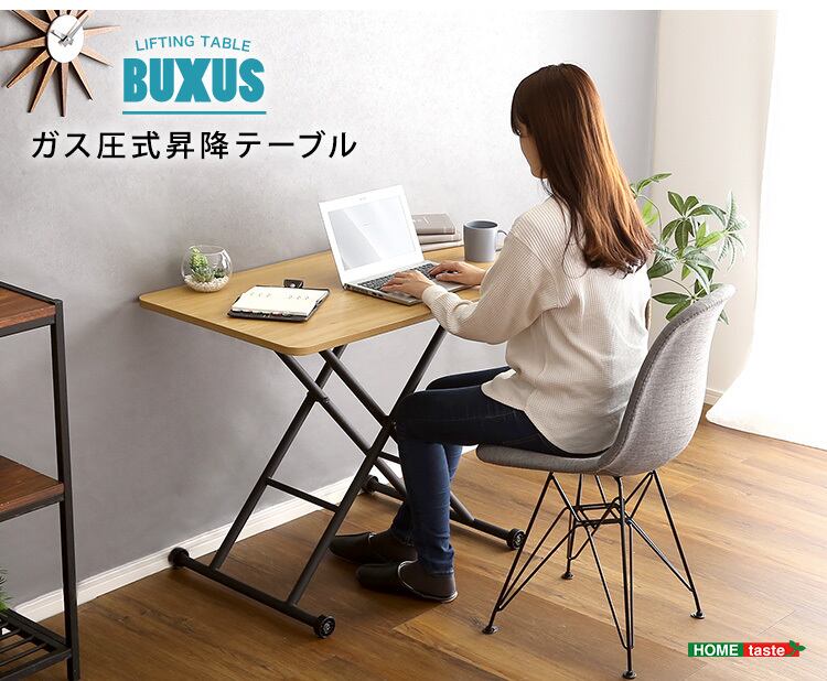 2カラー【ウォールナット】折りたたみ式無段階ガス圧昇降テーブル【BUXUS-バクサス-】