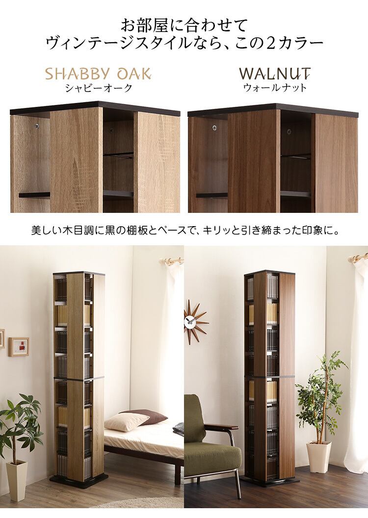2カラー【シャビ―オークブラック】回転ブックラック8段【Kerbr-ケルブル-】