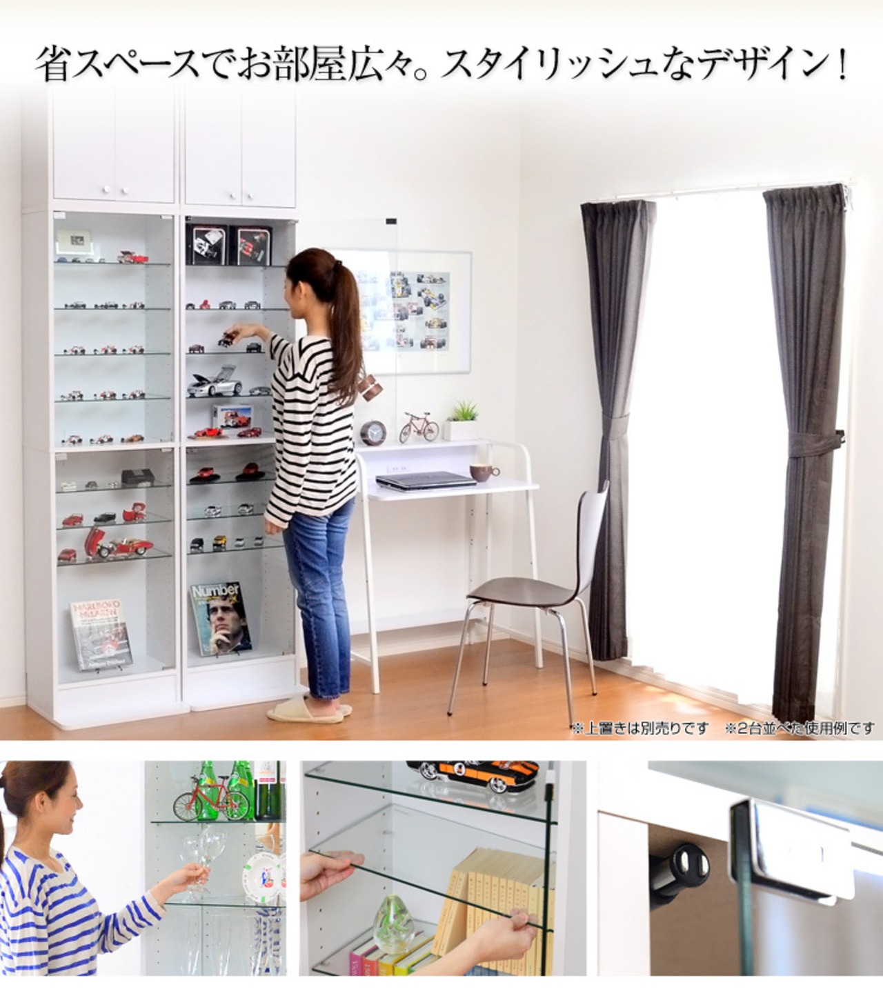 2カラー【ホワイト】コレクションラック【-Luke-ルーク】深型ハイタイプ