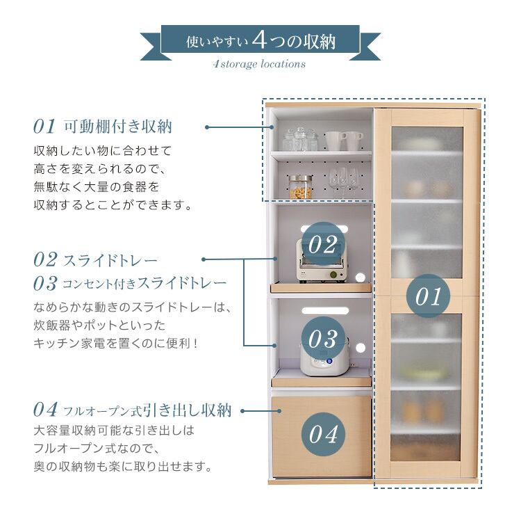 スライドタイプの新しい食器棚です。