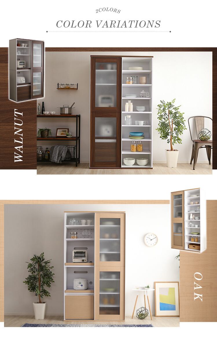 2カラー【ウォールナット】ガラス引戸食器棚【Louche-ルーシュ-】