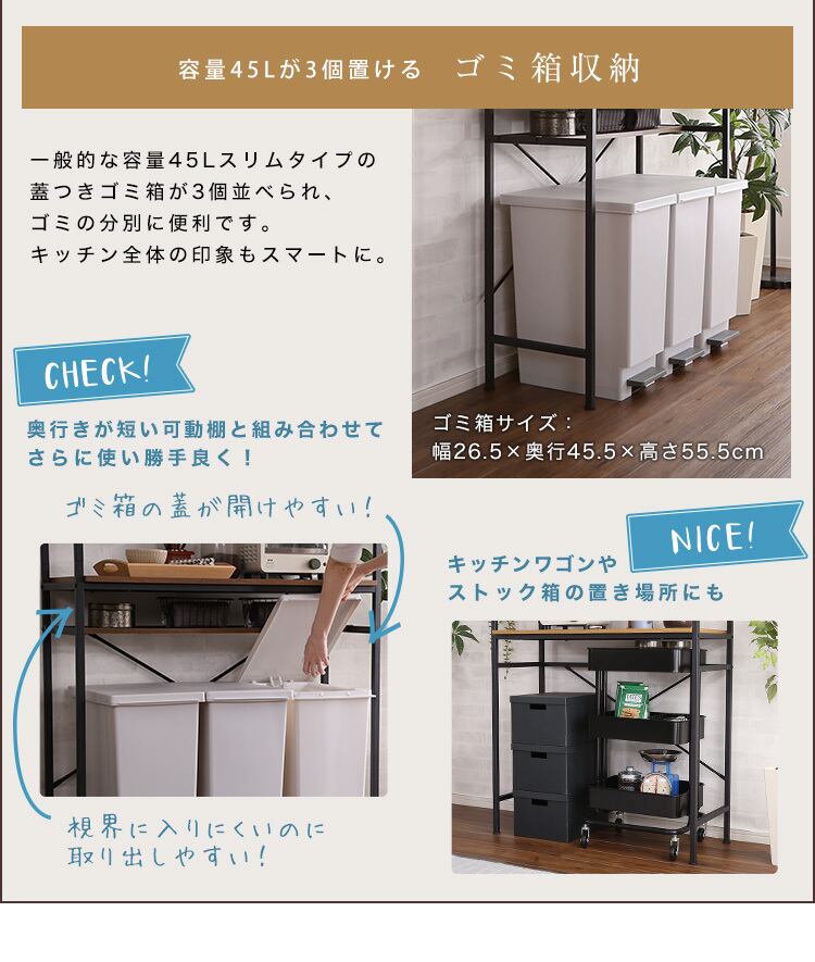 ごみ箱上のデッドスペースを有効活用することで、収納力がUP!