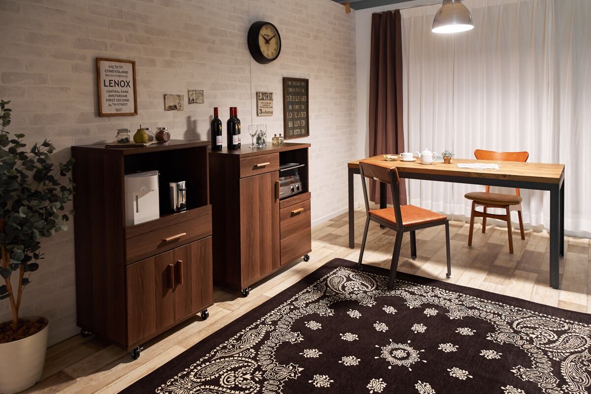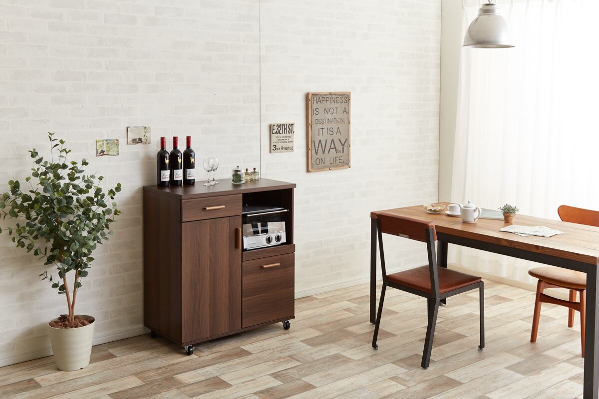 2カラー【ブラウン】レンジ台 キャスター付き 80cm