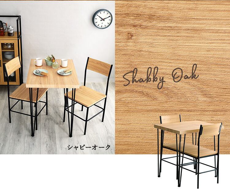2カラー【シャビ―オーク】ヴィンテージ背もたれ付きダイニング3点セット 【Ferro e Legno-フェロエ レグノ-】