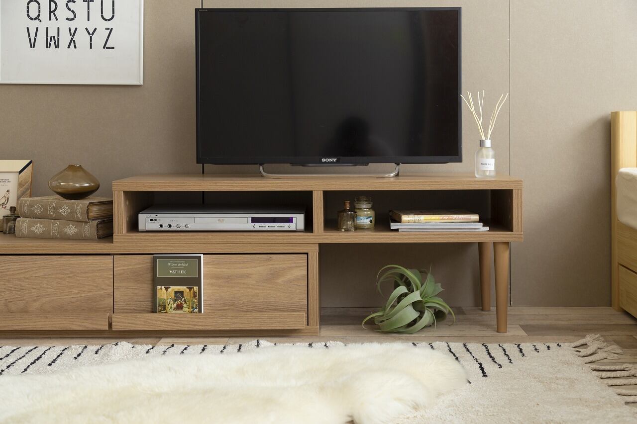 伸縮・回転してレイアウト自在のテレビボード!引出しが2杯ついて収納力もたっぷり!テレビボードやPCデスクとしてもご利用いただけます!当店一番人気のロングセラーのテレビボードです。