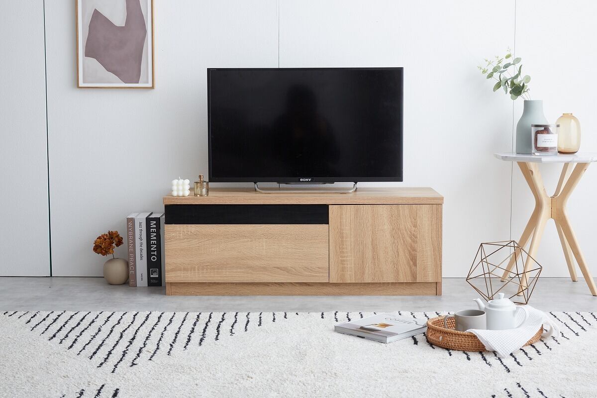 扉の取っ手や木のつなぎ目などをできる限り無くしたフラットな外観が、スタイリッシュで美しい『Connie』のテレビボード