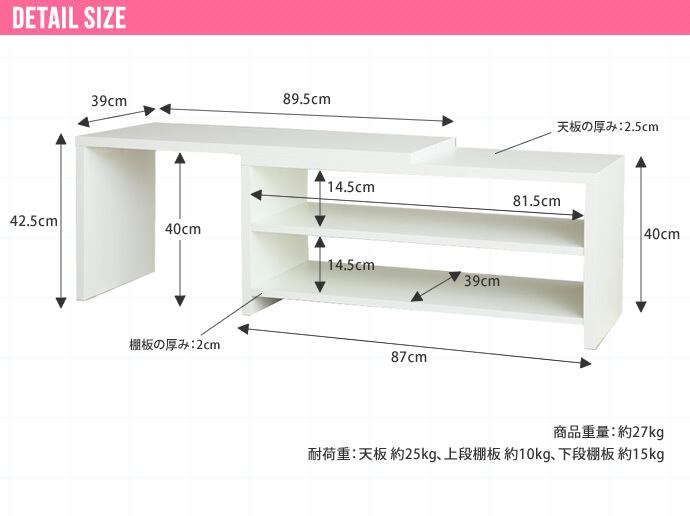 ●サイズ 幅89.5~172cm×奥行39cm×高さ42.5cm