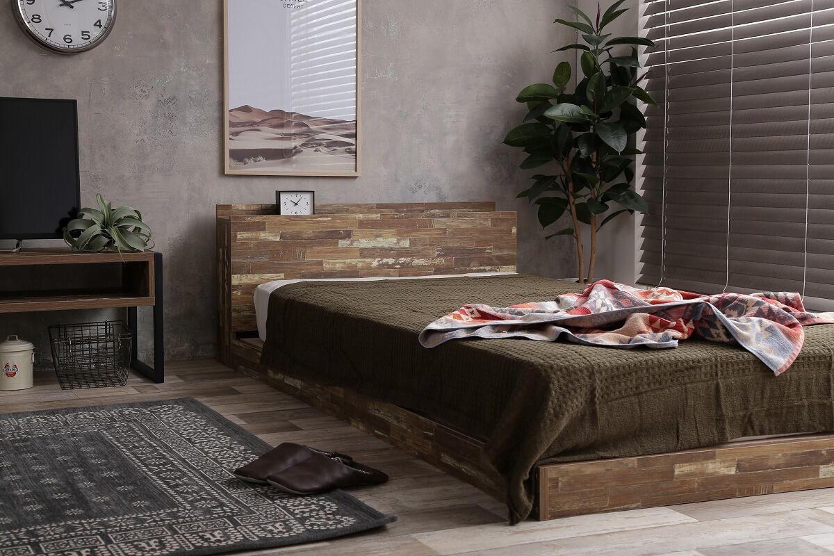 存在感抜群の人気のローベッドです。存在感のあるお洒落な寄木柄がポイント♪ロースタイルなので圧迫感がなく一人暮らしの方などお部屋を広く使いたい方にはおすすめの商品です!小物置きに便利な宮棚やコンセントも付いているので枕元で携帯の充電ができるのも嬉しいですよね♪