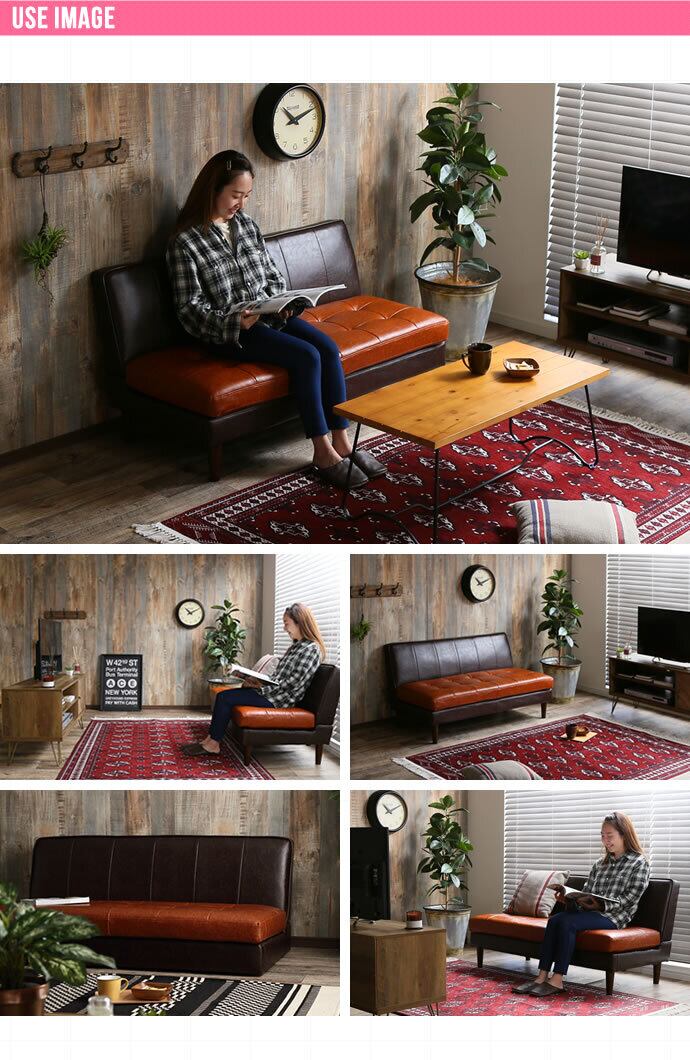 【2人掛け】ツートンカラーが魅力のヴィンテージ調ベンチソファ