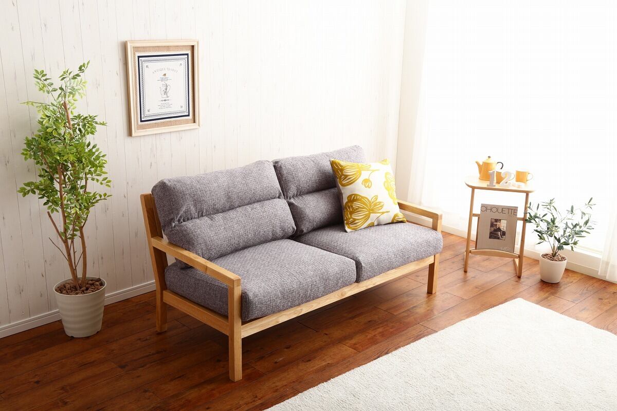 やわらかなデニム生地を使用したラフでカジュアルな二人掛けソファです。西海岸テイストのナチュラルかつスタイリッシュなデザインでお部屋がオシャレなイメージに!天然木のフレームに座面・背もたれクッションを置いただけのシンプルな構成で組立も簡単です!