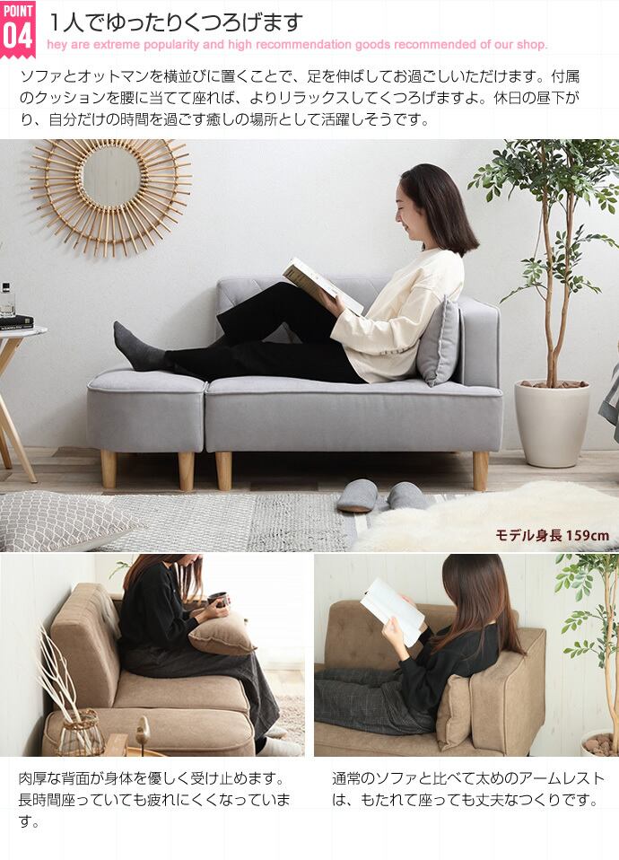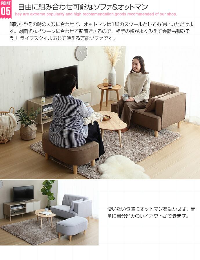 【2人掛け】 空間に馴染むオットマン付き2人掛けソファ