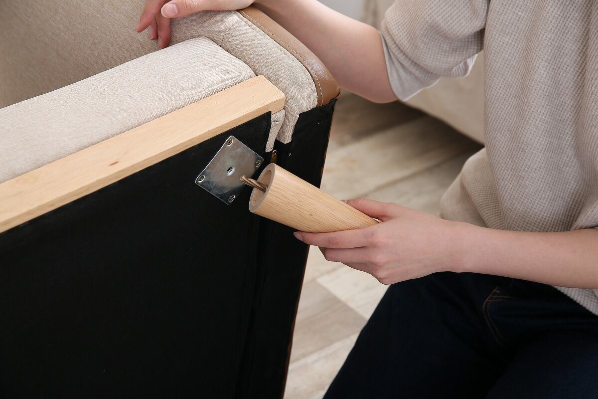 ●素材 中材/ウレタンフォーム、Sバネ、ボンネルコイル、張地/ファブリック、PVC、脚部/天然木