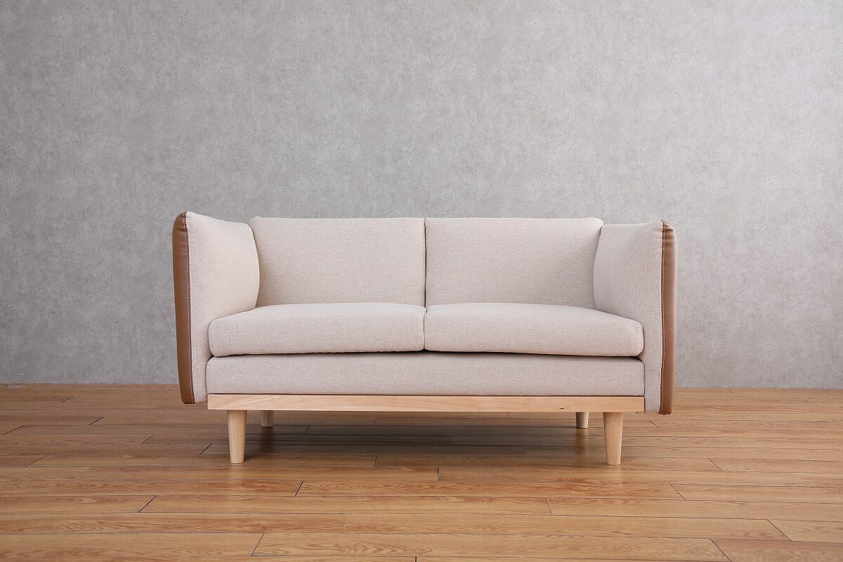 ブラウン系のカラーリングでファブリックとフェイクレザーを組み合わたバイカラーソファです