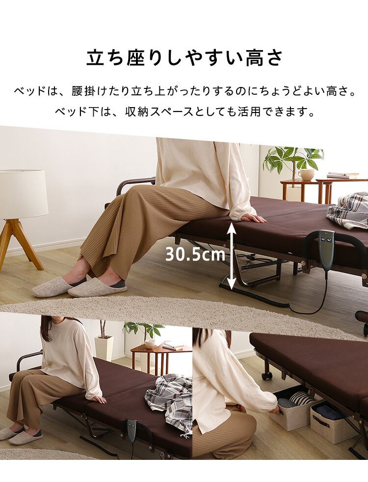 腰掛けたり立ち上がりするのにちょうどいい高さでベッド下には収納スペースとしてお使い頂けます。