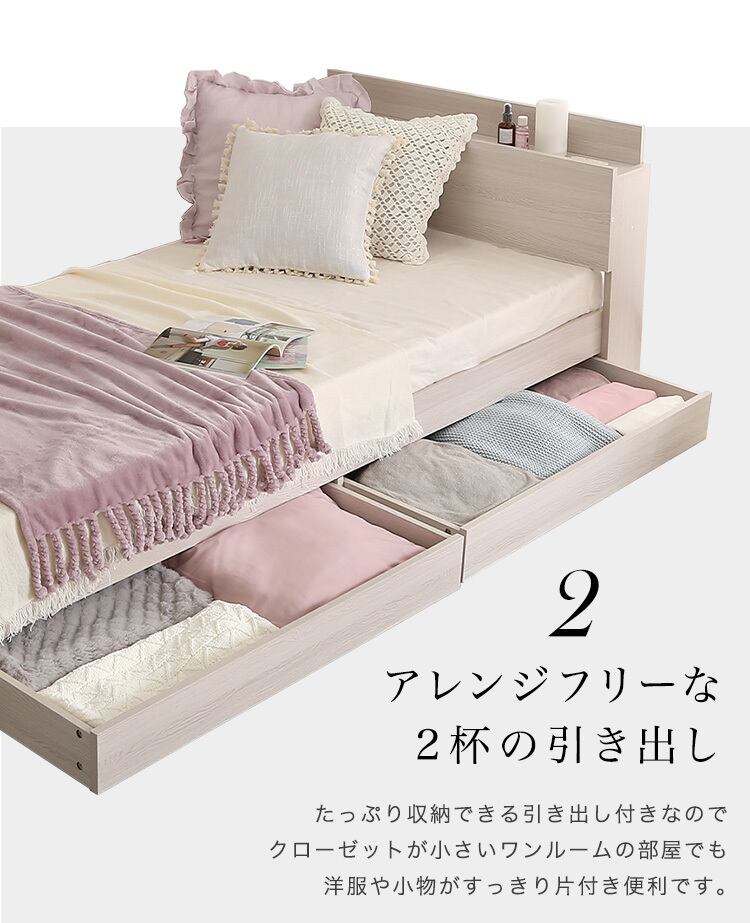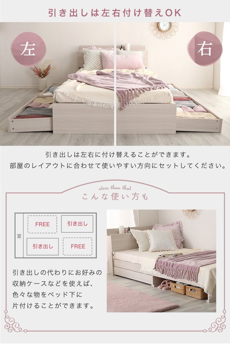 衣類や寝具などをたっぷり収納できる引き出し付きで左右付け替えOK!
