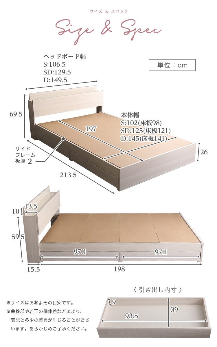 衣類や寝具などをたっぷり収納できる引き出し付きで左右付け替えOK!