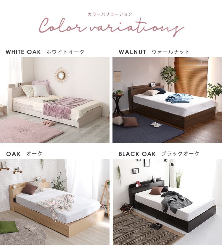 SD・4カラー【ブラックオーク】【ベッドフレームのみ】大人かわいいインテリア 棚・コンセント付きチェストベッド セミダブル【anail-アネール-】