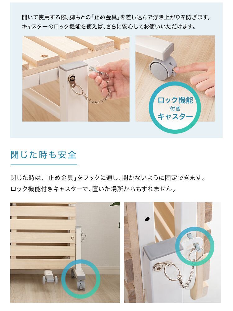 使わない時は折りたたむことで布団を干せて部屋干し利用、かつ省スペースに!