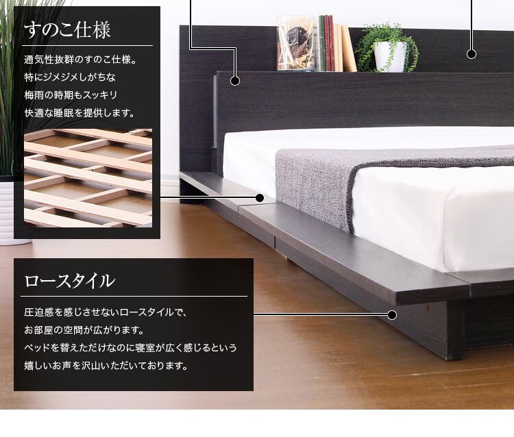 宮、照明、コンセント付きフロアベッド【カエルム-CAELUM-(シングル)】
