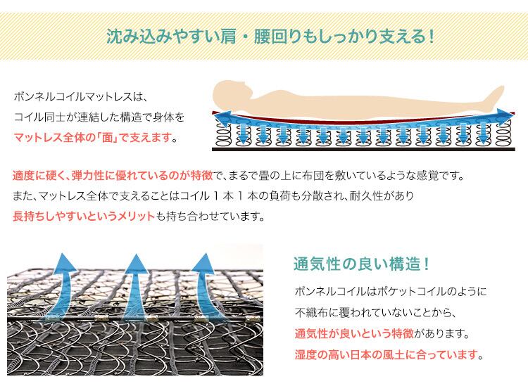 (マットレス)側地:ポリエステル100%中材:ボンネルコイル、ウレタンフォーム、キルト、フェルト、不織布