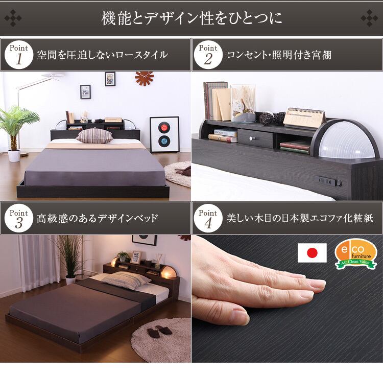 宮棚左右のヘッドライトが印象的なセミダブルサイズのフロアベッド!
