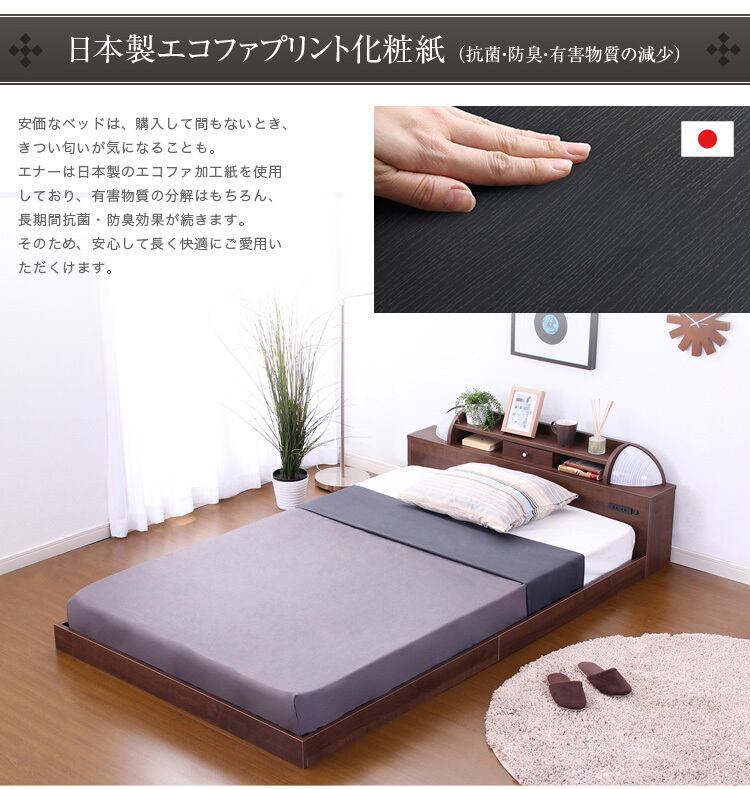 SD・2カラー【ウォールナット】【ポケットコイル付】宮、照明付きデザインベッド【エナー-ENNER-(セミダブル)】(ロール梱包のポケットコイルスプリングマットレス付き)