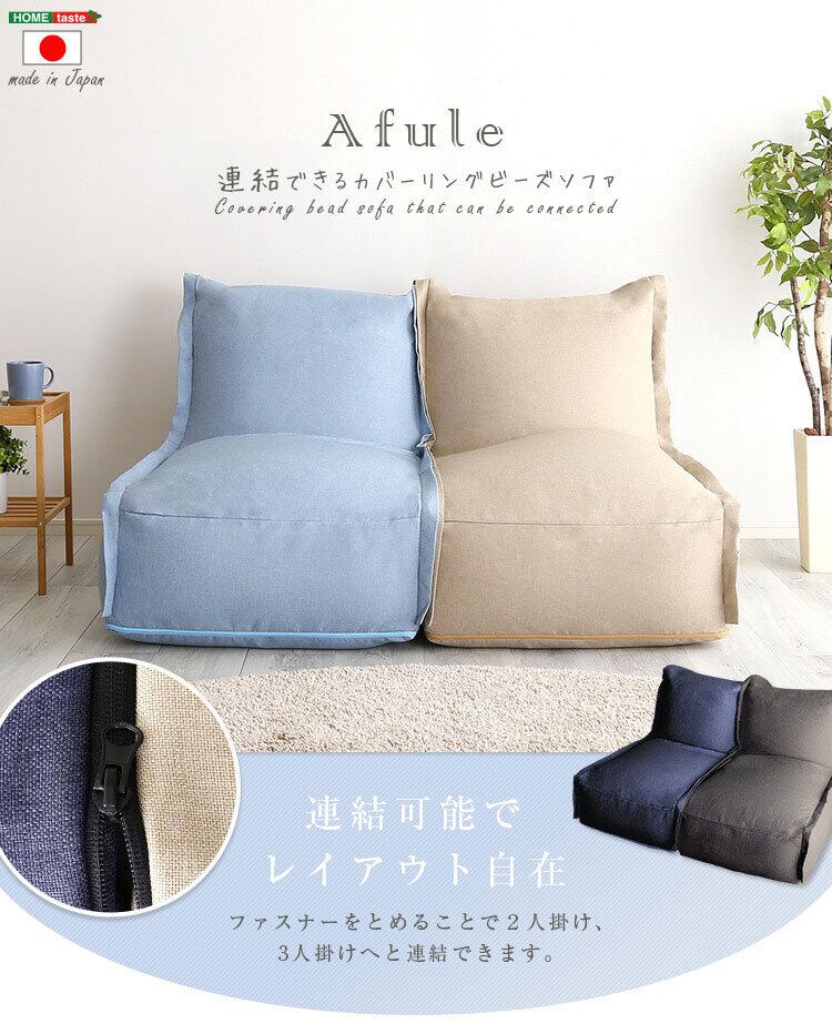 4カラー【ライトブルー】連結できる カバーリングビーズソファ【AFULE-アフューレ-】