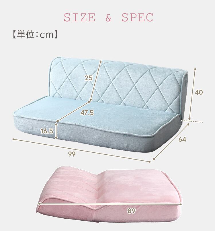 背もたれはダイヤモンド柄の生地を使用しているので、とても可愛いです。