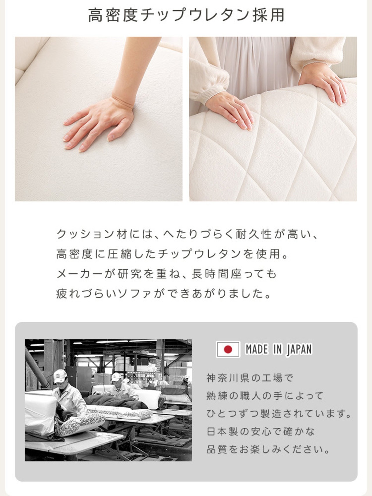 高級ソファやマットレスにも使用されるポケットコイルを搭載しているので上質な座り心地です。