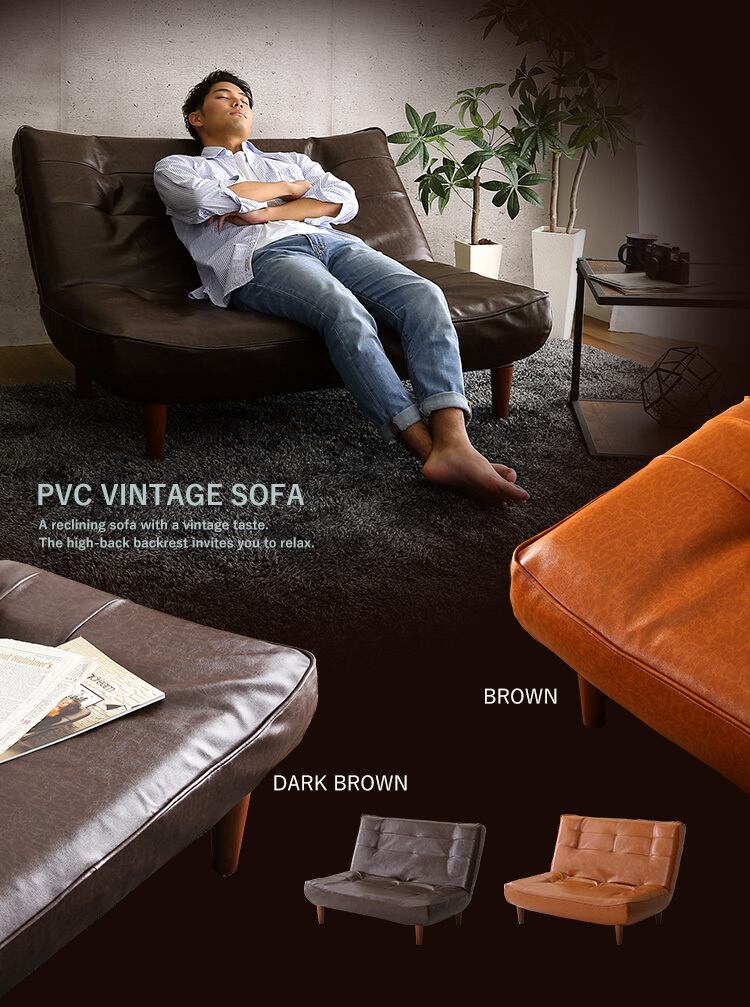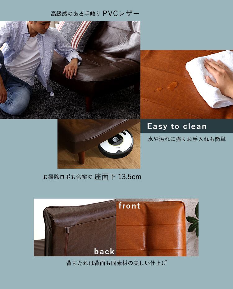 高級感のあるPVCレザーは水や汚れに強くお手入れしやすい生地。牛革テイストのヴィンテージカラーが雰囲気のある大人部屋を演出します。