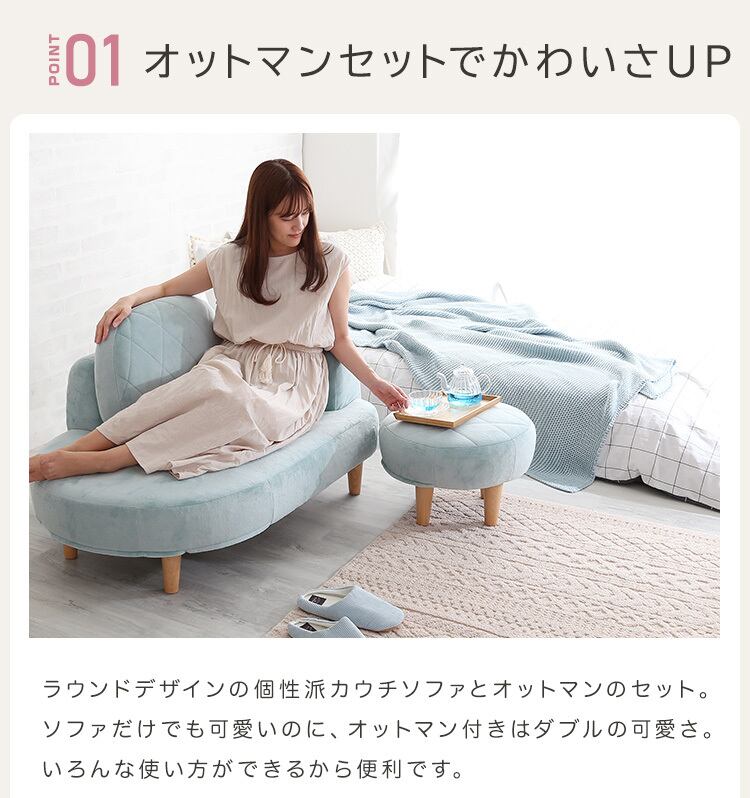 オットマン付きなので、サイドテーブルや脚置きにしたり自由にお使い頂けます。