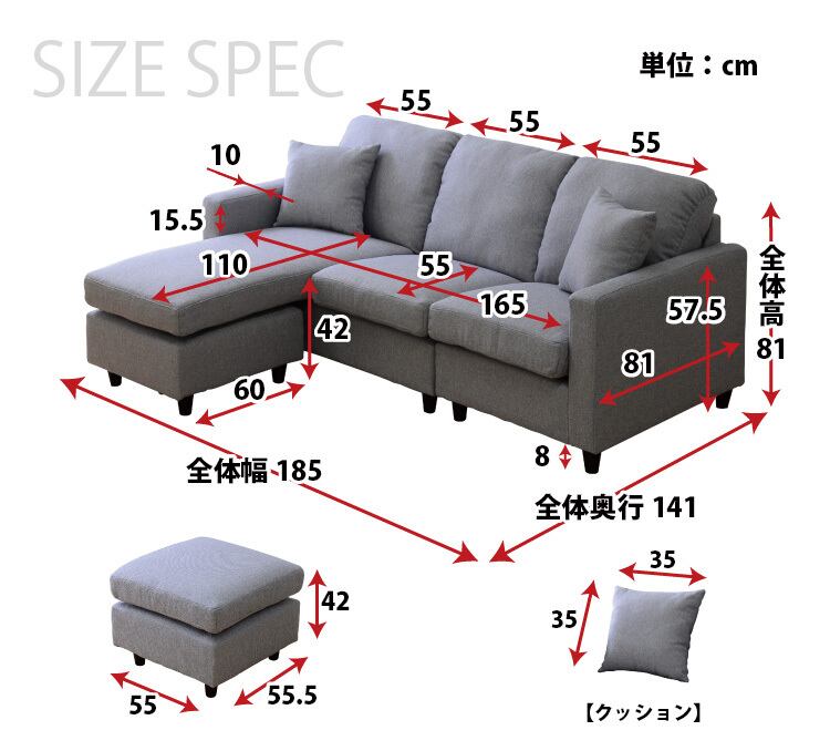 座り心地を追求!ポケットコイル入りコーナーソファ!クッションの移動でレイアウトが自由自在!