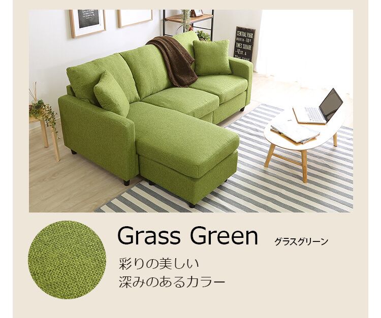 選べる9カラー【グラスグリーン】ポケットコイル入りコーナーソファー【Union-ユニオン-】