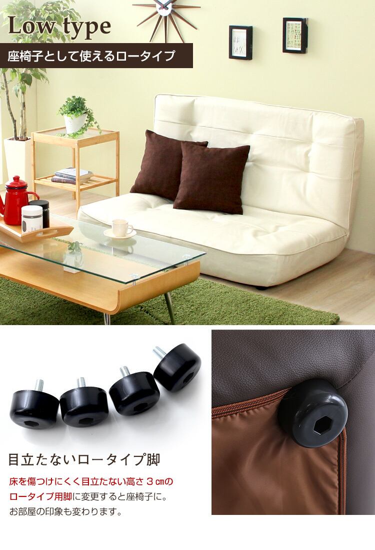 ハイタイプ木目調脚をロータイプ脚に取り換えれば座椅子としてもご利用いただけます。