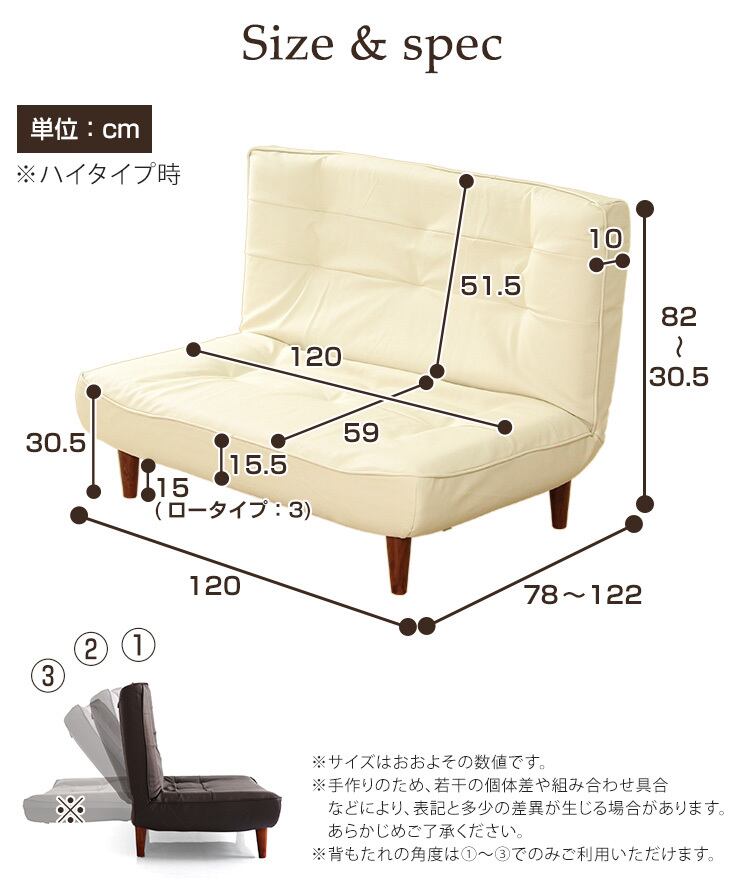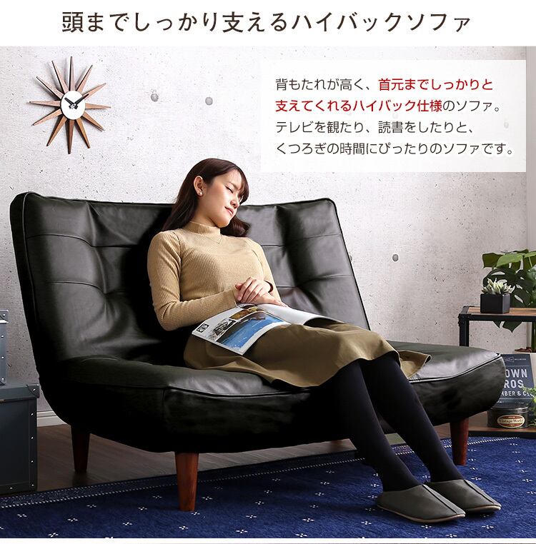 2人掛ハイバックソファ(PVCレザー)ローソファにも、ポケットコイル使用、3段階リクライニング 日本製Comfy-コンフィ-