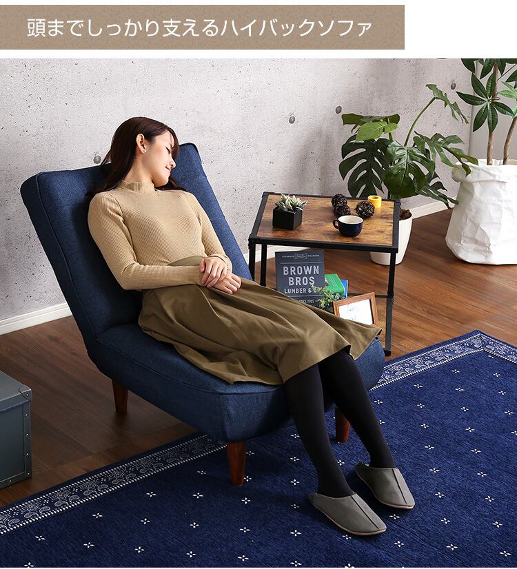 頭まで支えてくれるハイバック仕様だから、ゆったり寛げる1人掛けソファ♪