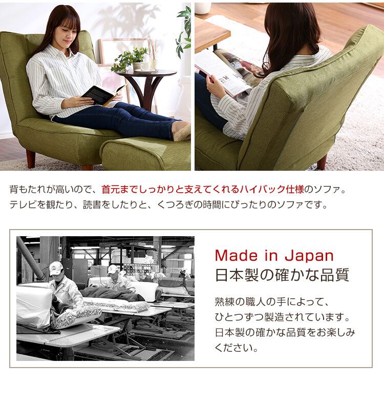 1人掛ハイバックソファ(布地)ローソファにも、ポケットコイル使用、3段階リクライニング 日本製|lemmik-レミック-