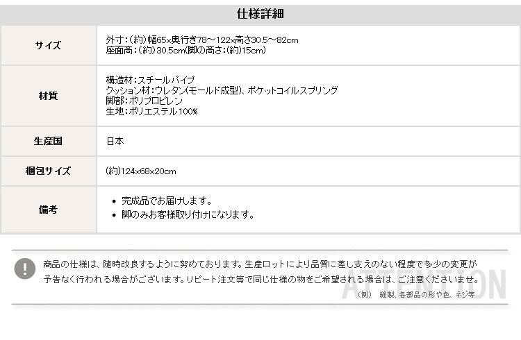外寸:(約)幅65x奥行き78〜122x高さ30.5〜82cm