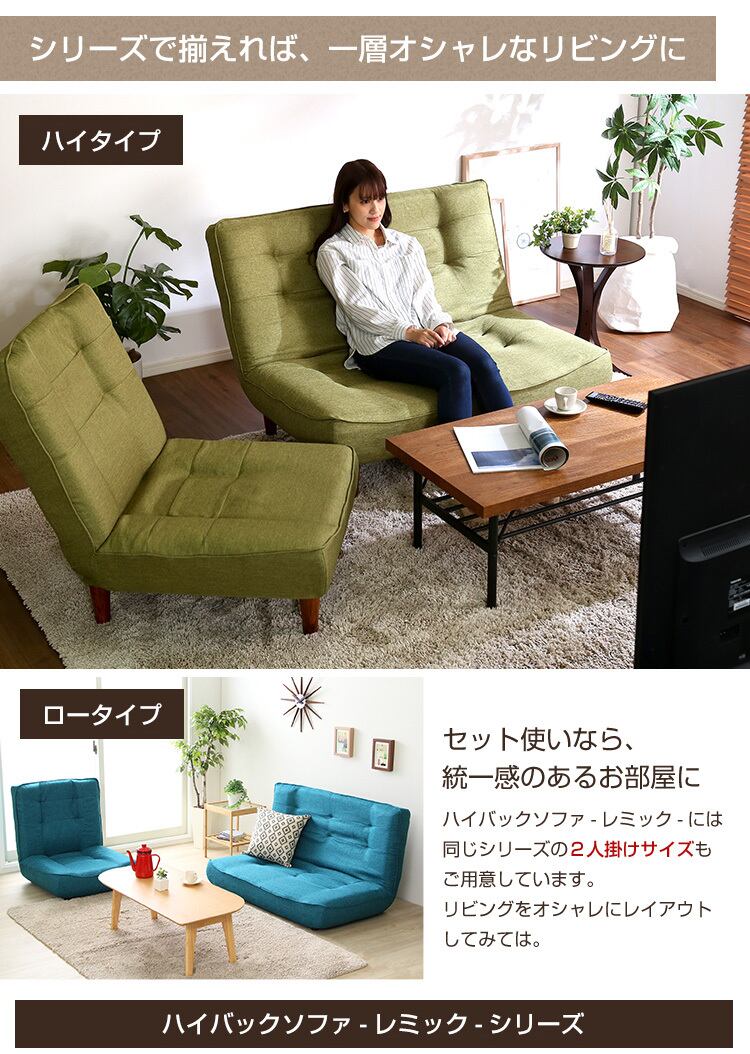 1人掛ハイバックソファ(布地)ローソファにも、ポケットコイル使用、3段階リクライニング 日本製|lemmik-レミック-